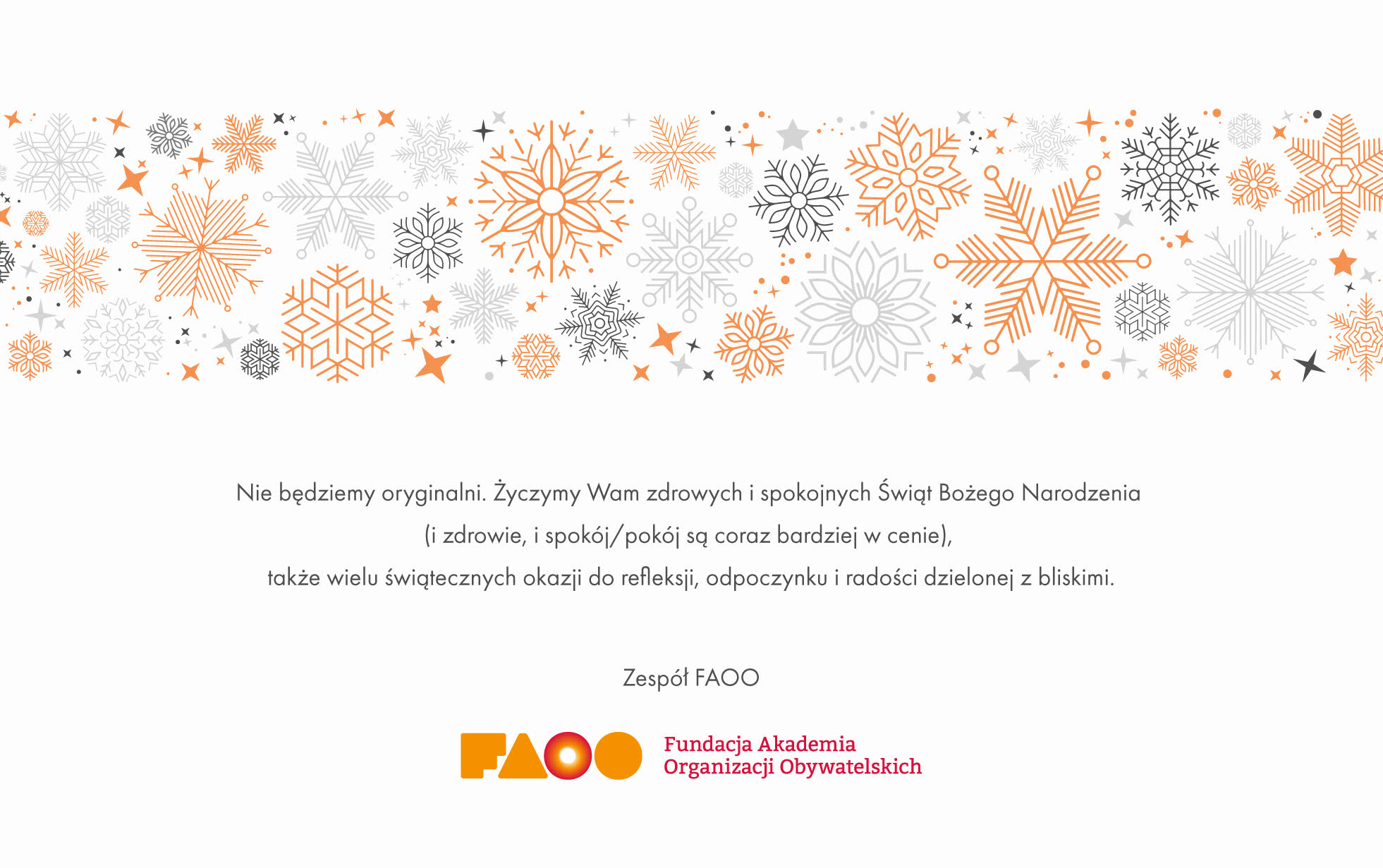 Życzymy Wam zdrowych i spokojnych Świąt Bożego Narodzenia. I zdrowie, i pokój/spokój są teraz coraz bardziej w cenie), a także wielu świątecznych okazji do refleksji, odpoczynku i radości dzielonej z bliskimi.