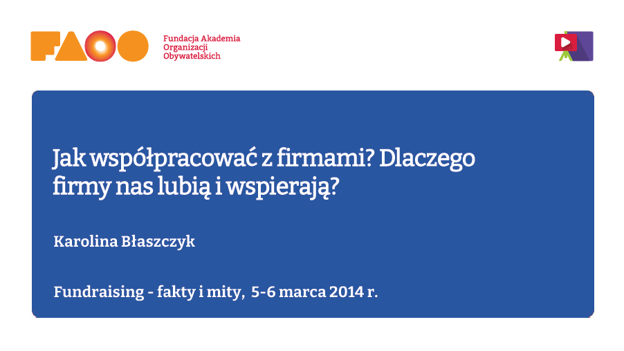 Film edukacyjny Film, w którym występuje Karolina Błaszczyk z Fundacji Świętego Mikołaja, przedstawia istotne wskazówki ułatwiające nawiązywanie i rozwijanie współpracy fundraisingowej z firmami.